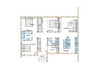 Tiny house type 2 heeft een totaal oppervlakte van 52,64 m²  incl. terras en het woonoppervlakte is 44,37m²